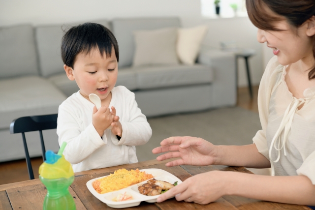 「美味しいね」「もう一口食べる?」などの会話を通じて、言葉の発達も促されます。